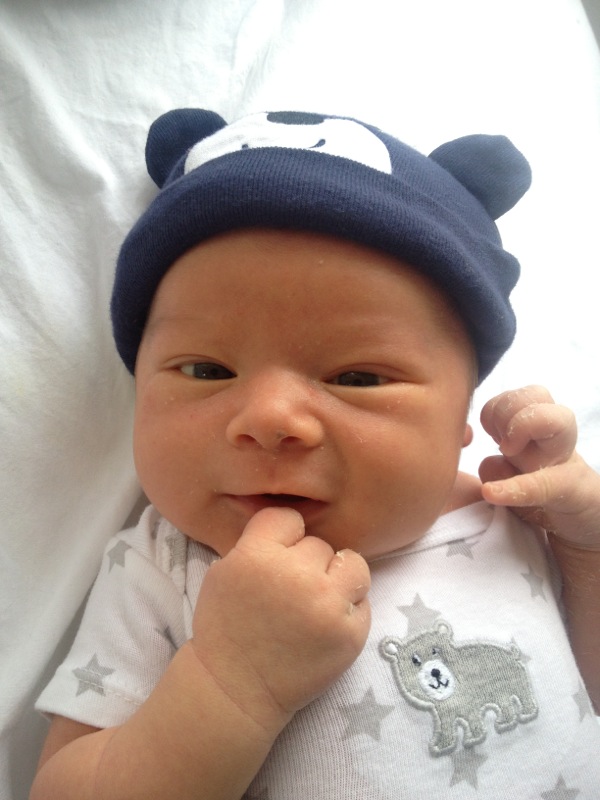 We came home Thursday morning from the hospital and have been enjoying and adapting naturally to our sweet baby. Ka’io is very calm and likes music. He loves to eat, sleep and do other major bodily functions. Daddy is happier than ever to have a “mini-me” and loves to swaddle baby with blankets into what he calls “sushi rolls”. Our families are so happy and we are in heaven.