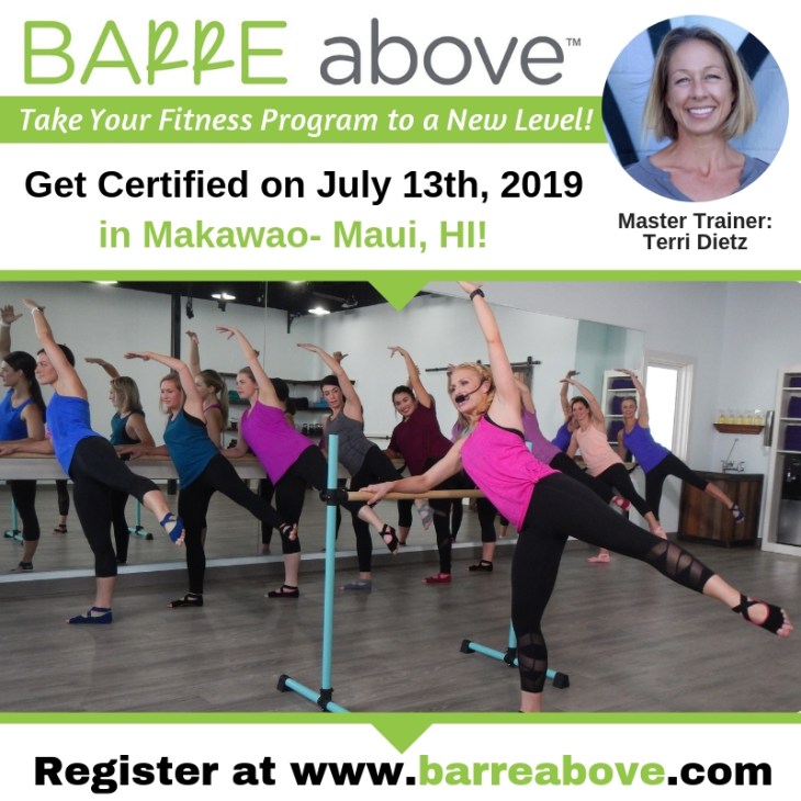 Om Maui Studio is hosting a nationally accredited barre instructor training in July with Barre Above! Barre Above™ is a certification program that educates participants on foundational & sound movement progressions appropriate for all levels & ages – join us at the barre!!